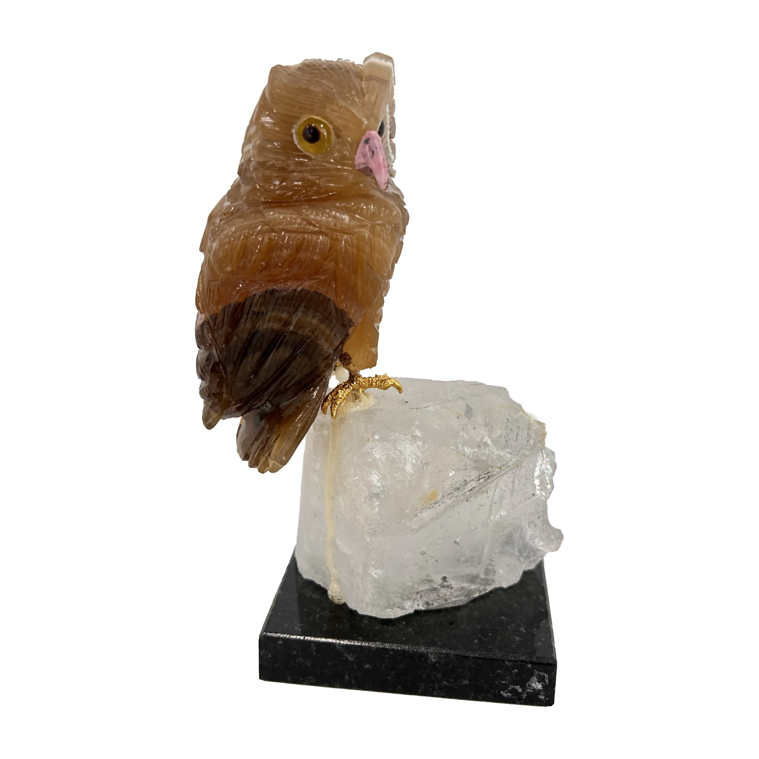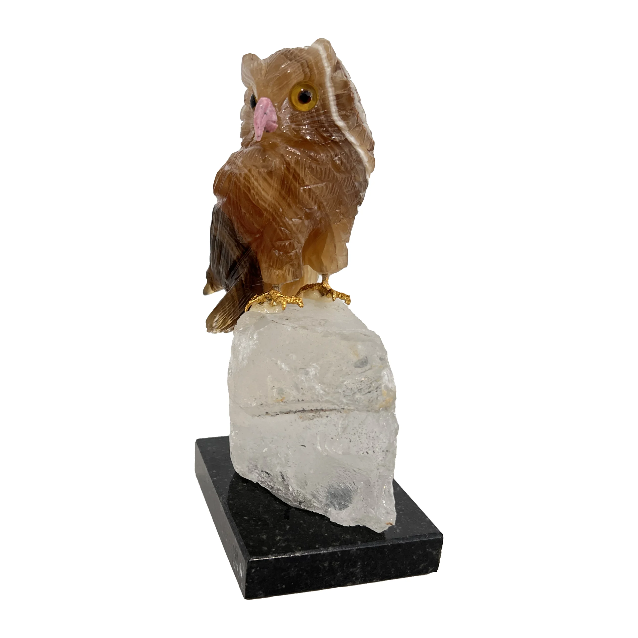 Semi-Precious Stone Art, Handcrafted Owl Sculpture by Valdstone.
